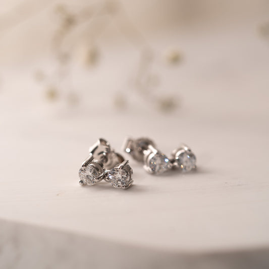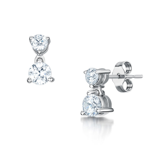 Charming and very versatile for everyday wear, the Maia Earrings features a pair of round brilliant cut lab grown diamonds, both set in a three-claw setting. Giving an hour-glass effect, the lower diamond hangs gently from the upper one, and will throw sparkle out as you move.