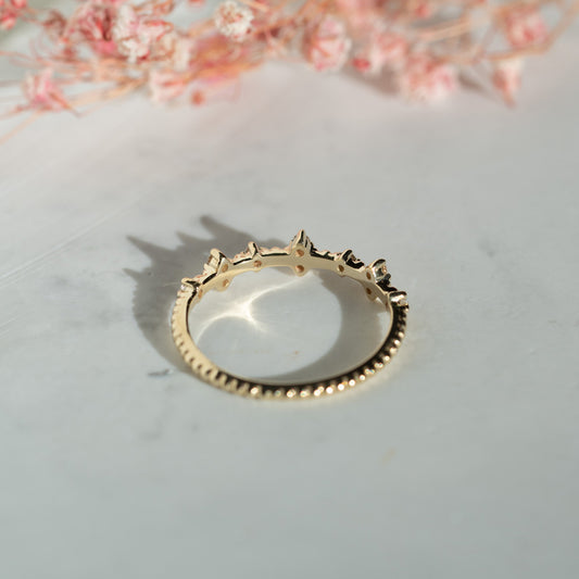 This distinctive ring has the appearance of a twisted thorny rose stem that coils around the wearer’s finger. Perfect for stacking, it is crafted using fully recycled yellow gold and sustainably grown lab diamonds in a milgrain design with alternating accented thorns. The Rosenwyn Ring expresses the strength and feminine depths of a rose while imbuing its wearer with confidence and elegant resilience. An eye catching and lovingly crafted ring with a delicate vintage feel to it, for the strong, independent woman who wants to make a statement of their personality.