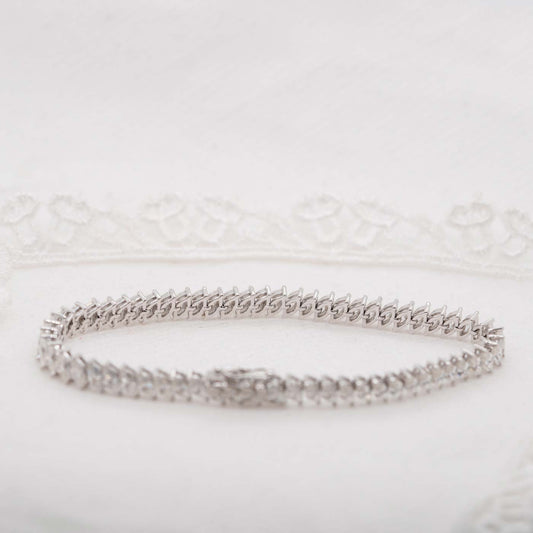 The Abigail Bracelet features 51 gorgeous glittering marquise cut gemstones that form a glamorous chain style pattern. This leads up to the glittering focal point and held securely with a substantial lobster clasp. Perfect bridal or everyday jewellery.