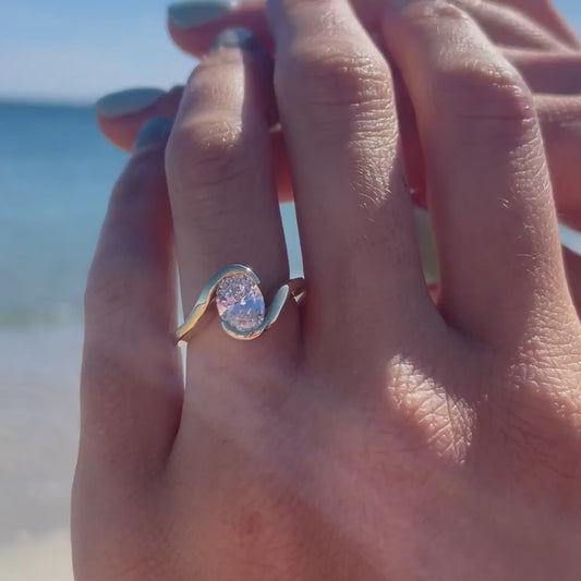 Elegant and effortlessly feminine, The Coralie Ring draws its graceful inspiration from the ocean’s fluid movement. At its centre lies a luminous oval lab grown diamond, gently embraced by softly sweeping shoulders that form a sculptural semi-bezel bypass setting. The flowing design evokes the gentle rise and fall of waves, creating a look that feels organic, serene, and timeless. Crafted with smooth contours and a low-profile silhouette, The Coralie Ring offers exceptional comfort and security, perfect for those with active lifestyles. Made in fully recycled 18k Gold, it pairs sustainable craftsmanship with modern elegance.
