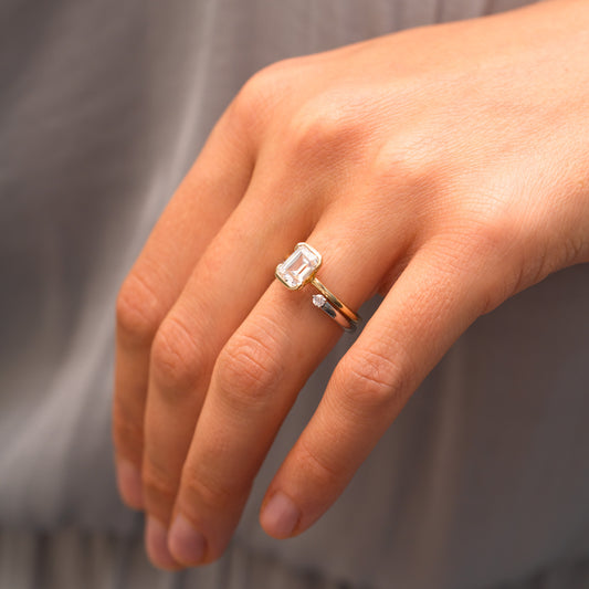 The Alina Ring is the perfect fusion of contemporary design and timeless elegance. This stunning stacking ring is not only a versatile addition to your jewellery collection, but it also doubles as a stunning wedding band.