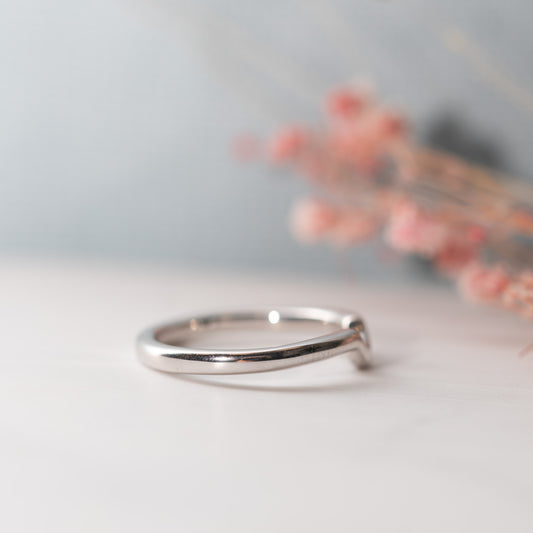 Crafted with expert precision and attention to detail, the Cosima Ring is the perfect way to complete your bridal set. Designed to sit snug against the center stone of your engagement ring, this modern shaped wedding band adds a touch of elegance and sophistication to your existing ring.