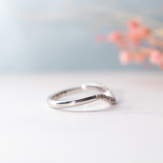 The Helena Ring boasts a sophisticated contour that fits effortlessly with any engagement ring, creating a cohesive and sophisticated look. Its smooth and sleek band is adorned with an array of shimmering lab grown diamonds, each delicately pavé set to catch the light and enchant the eye. Crafted with love and designed to seamlessly accompany your engagement ring, this pavé set band offers a stunning display of sparkle and elegance.