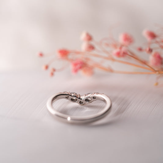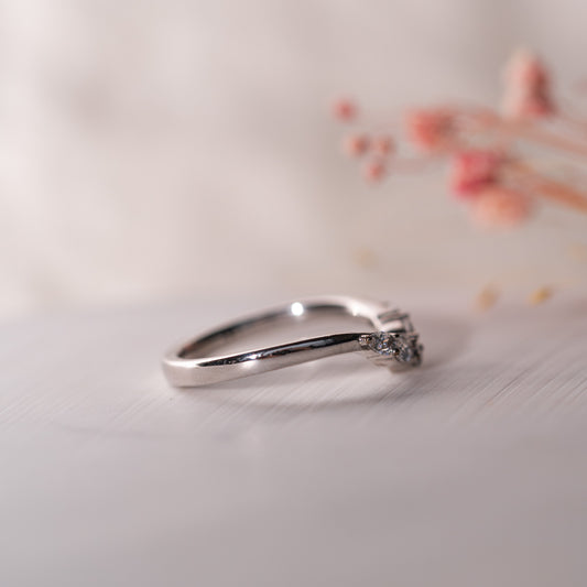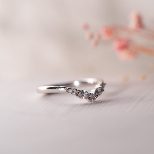 The exquisite Nell ring is crafted with a vintage inspired mix of round brilliant, oval, and pear cut lab grown diamonds, exuding a stunning brilliance that will leave you mesmerized. Each lab diamond is carefully selected and set within a gentle curve, creating a unique and elegant design that delicately stacks beside your engagement ring.