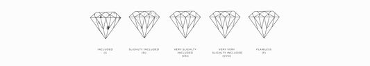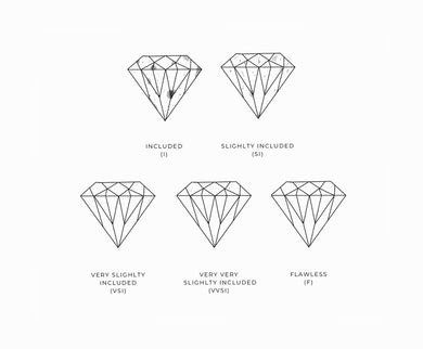 When diamonds are formed, deep underground and under extreme pressure and heat, imperfections in the crystal structure can form and mineral impurities become trapped inside the stone. They are graded on a scale from (I) Included to (F) flawless.