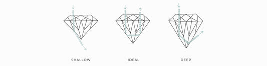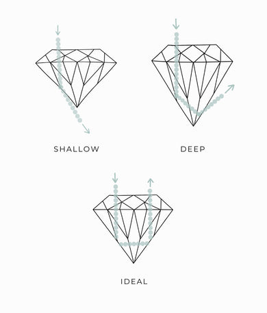 Cut is often confused with shape, although there is a big difference between them. The cut is the greatest influencer of brilliance and sparkle, regardless of the shape of a diamond. The type of cut a stone has refers to how well it returns light and the amount of light return has to do with the geometric facet pattern. A well-cut diamond will have brilliant sparkle and fire, because it captures all the available light and bounces it back to the eye. If a cut is too deep, the light will be reflected out of the side of the diamond, whereas if it is too shallow, it will be lost from the bottom. The closer a diamond is to an Ideal cut, the more sparkle it will emit. The more light return, the more desirable the stone is.