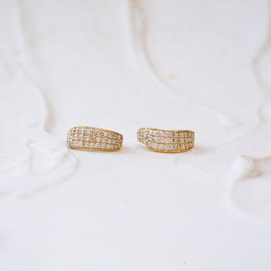 The Amaris Earrings are bold yet effortlessly wearable, designed to make a statement without overwhelming your everyday style. 120 round diamonds totalling 1.2ct trace a graceful, undulating wave along these huggie hoops, catching the light with every turn.